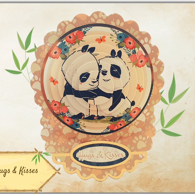 Design 2: It displays two pandas hanging each other, with the sentiment "Hugs & Kisses".