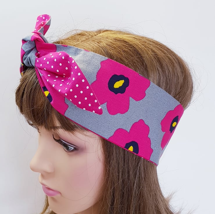 This rockabilly headband is made from printed 100% cotton fabric. The headband is NOT WIRED, NOT STRETCHY, UNTIED.