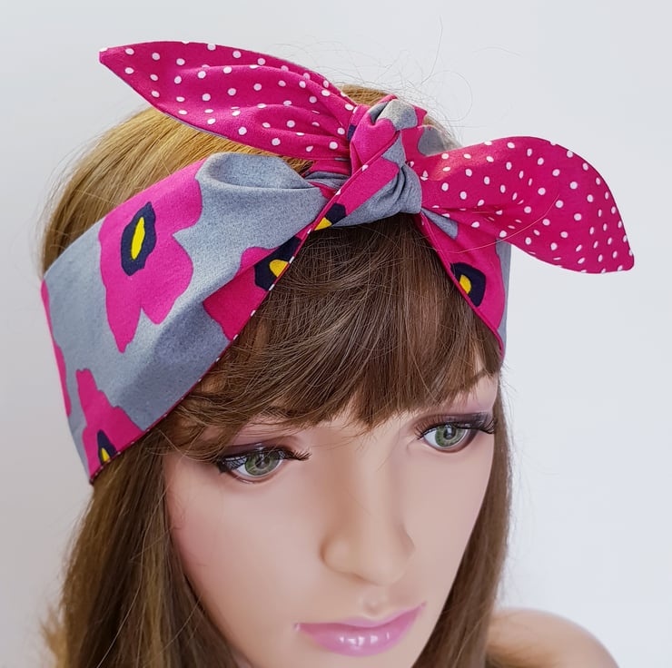 This rockabilly headband is made from printed 100% cotton fabric. The headband is NOT WIRED, NOT STRETCHY, UNTIED.