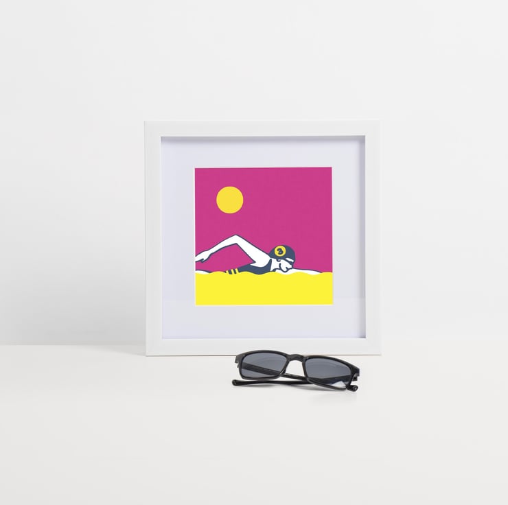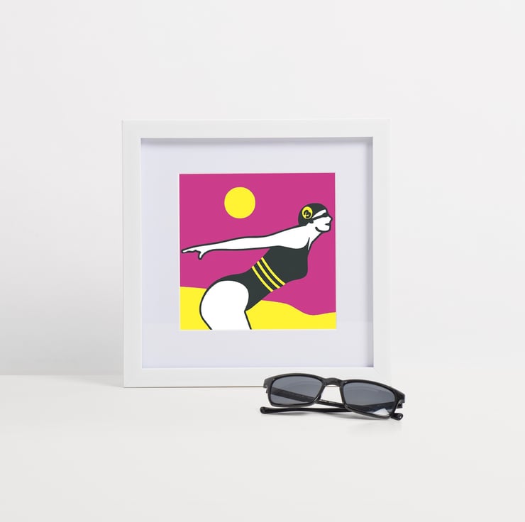 Inspired by my love of wild swimming. Stylised digital art with a screen print aesthetic.