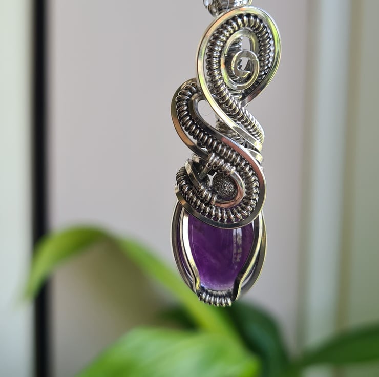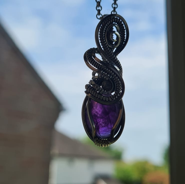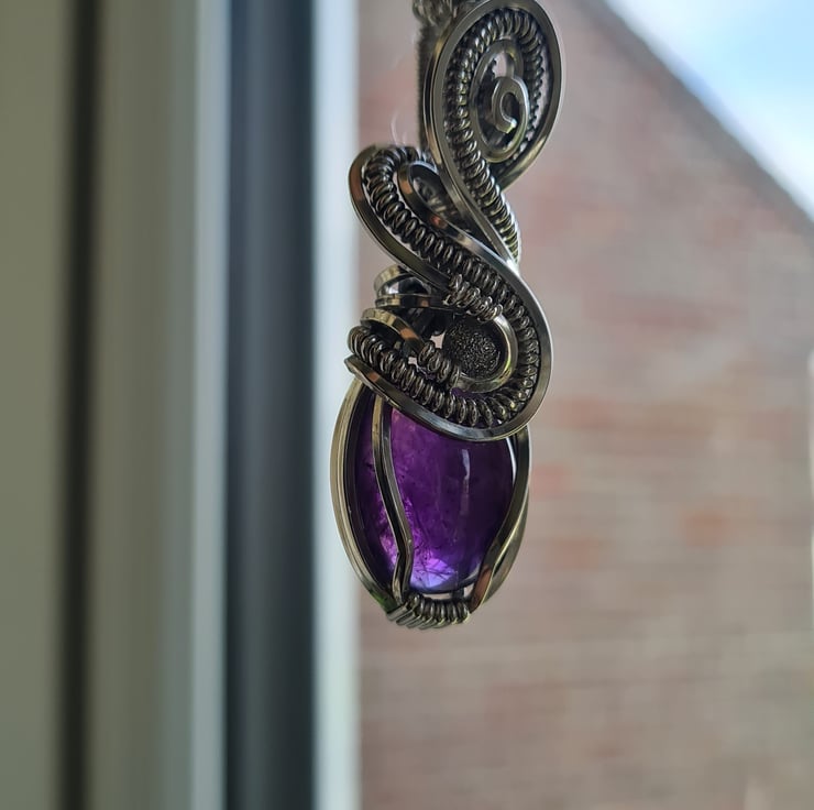 I have made this pendant using the most beautiful top AAA quality, Brazilian Amethyst, which I have encased in 925 Silver into this unique design,and then polished to a high shine for the final finish. This really is a high grade, stunning stone and the colour is just beautiful.