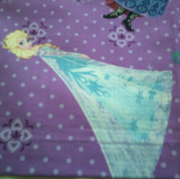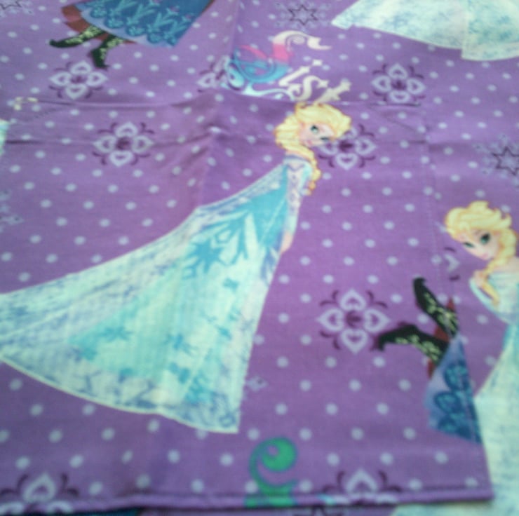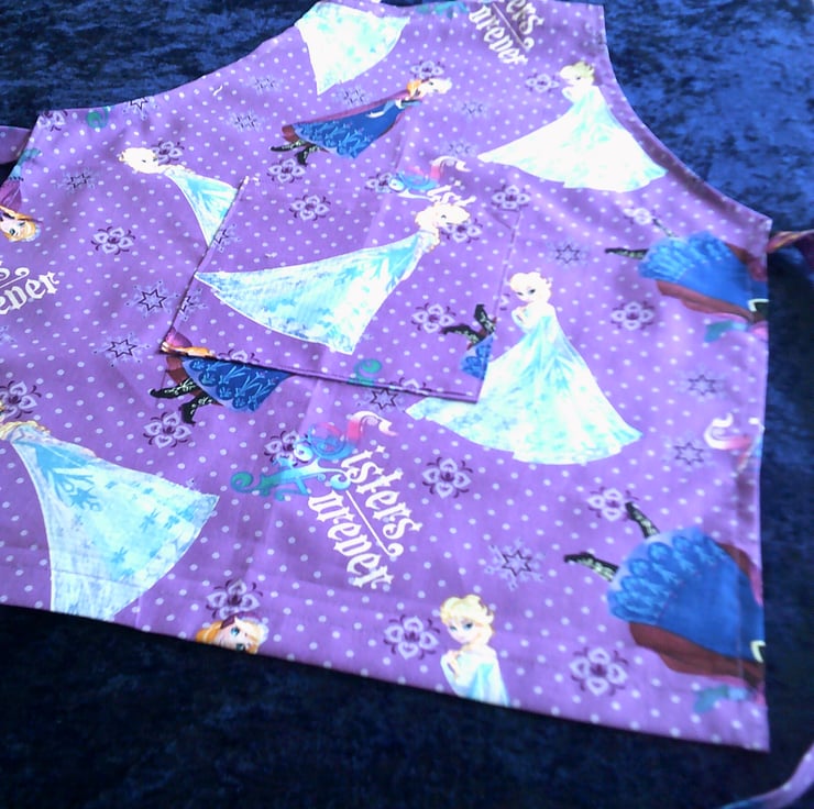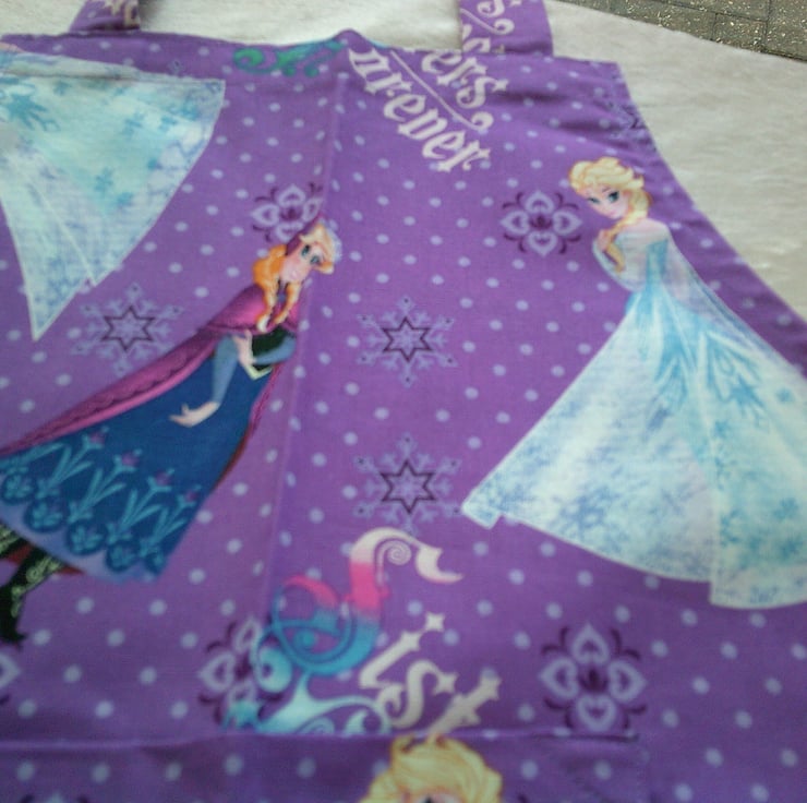 The design on fabric used for this apron is of Elsa and Anna - Frozen Sisters on a Magenta background.