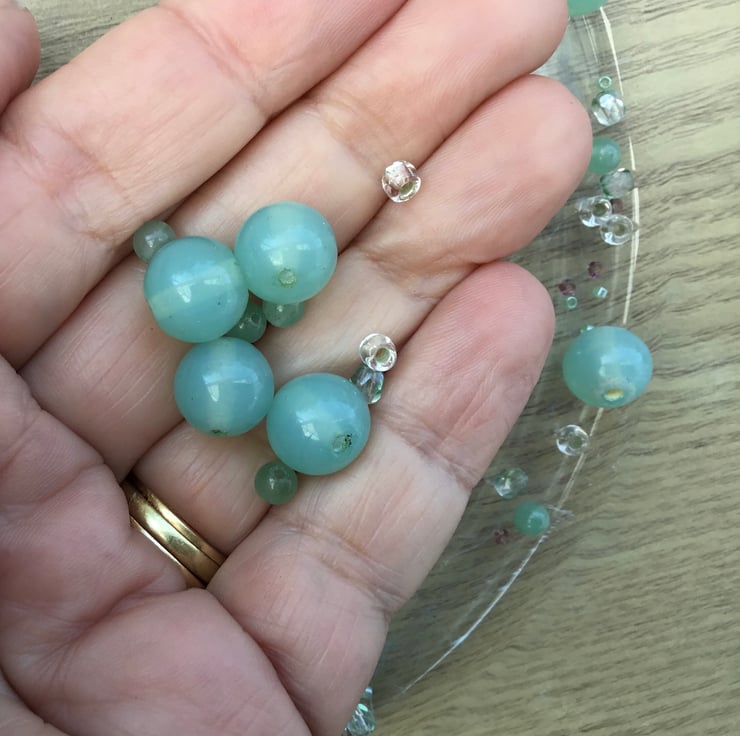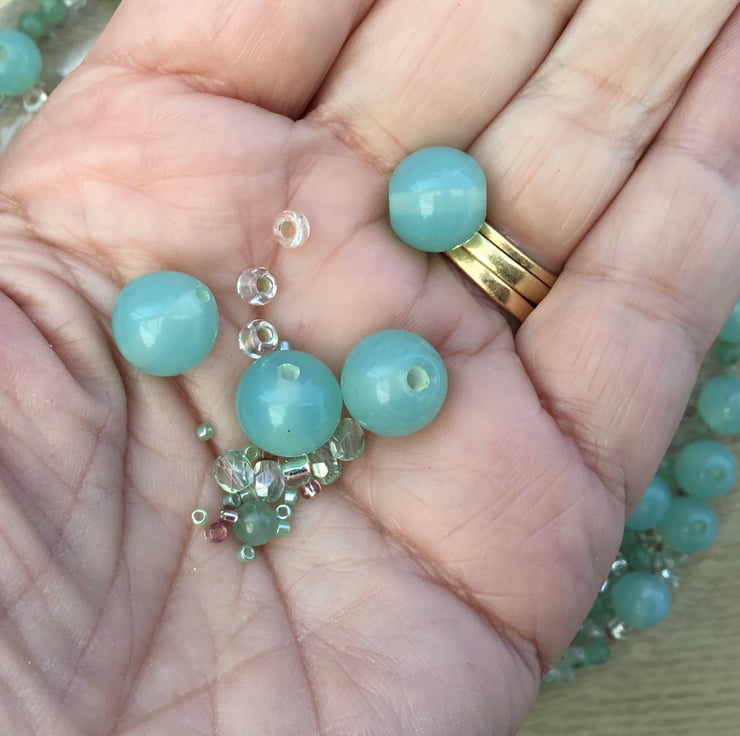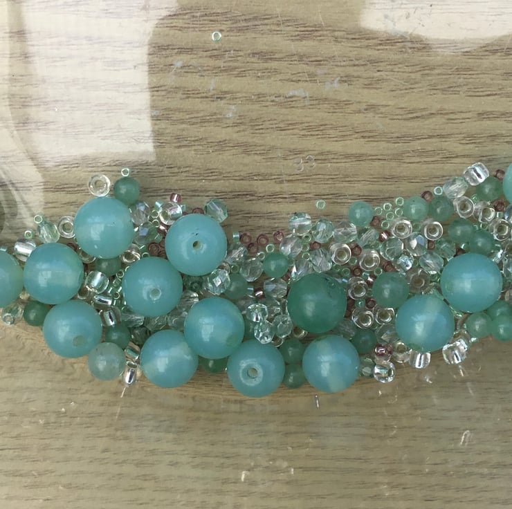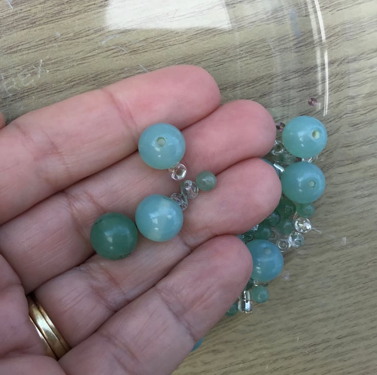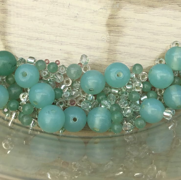 A pretty mixed selection of differing greens, clear and aqua toned glass beads for crafting or jewellery designers. Including round, Facetted and seed beads, please review the photographs and this is the exact set of beads you will get.