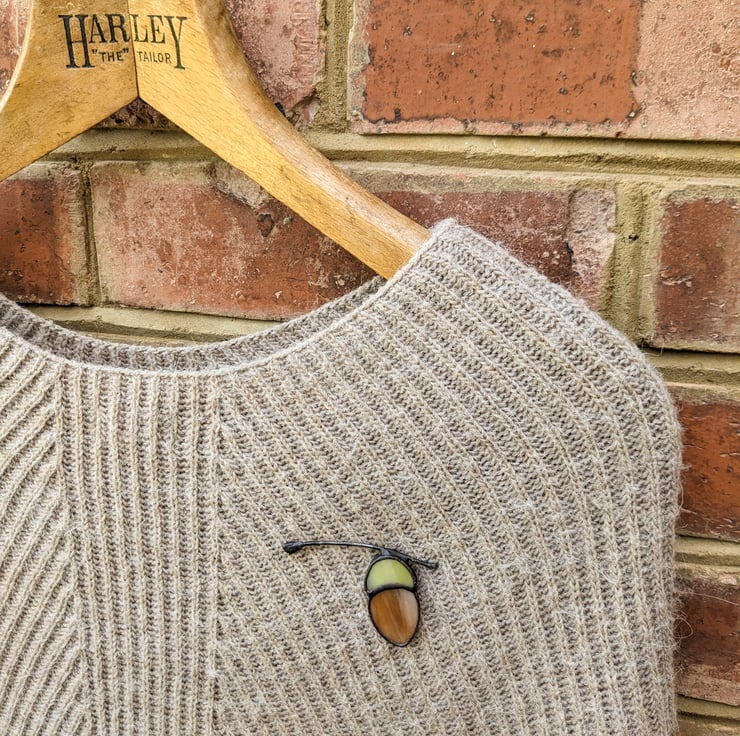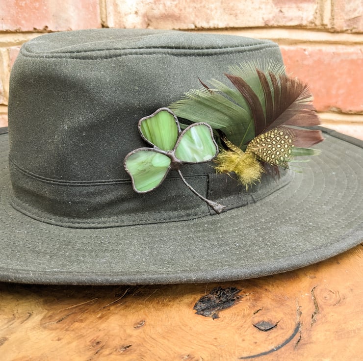 Stained glass brooches - choose from Acorn (green and brown), Honesty (cream) and Clover/Shamrock (green).