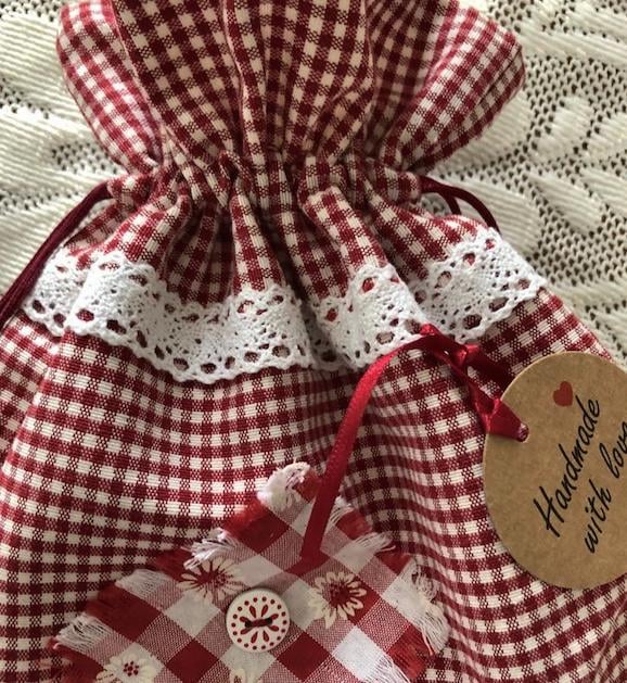 I love the timeless gingham fabrics and to find this lovely deep rich red in the homespun fabric range made it a must have. It looks so lovely made into little bags and I wanted to create something different...I love it and I hope you do to...