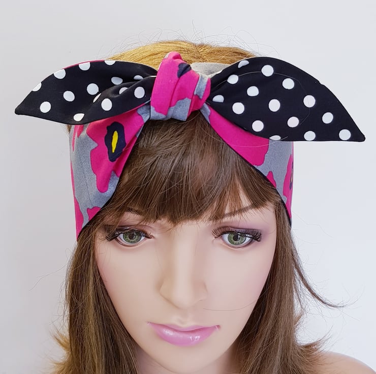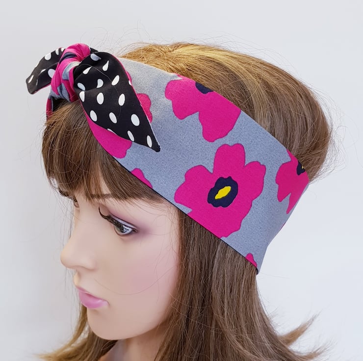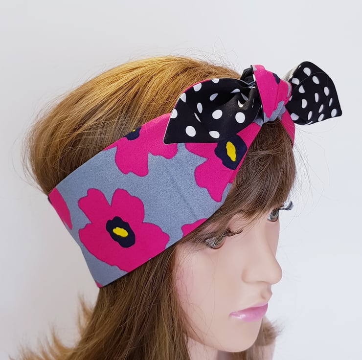 This rockabilly headband is made from printed 100% cotton fabric. The headband is NOT WIRED, NOT STRETCHY, UNTIED.