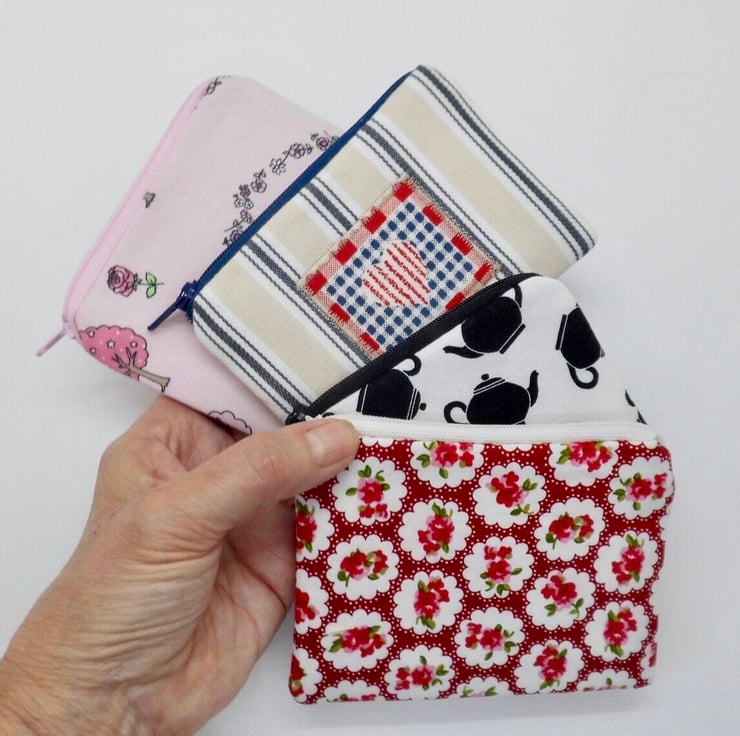 This is a pack of four coin purses, carefully handmade by myself using all new materials.