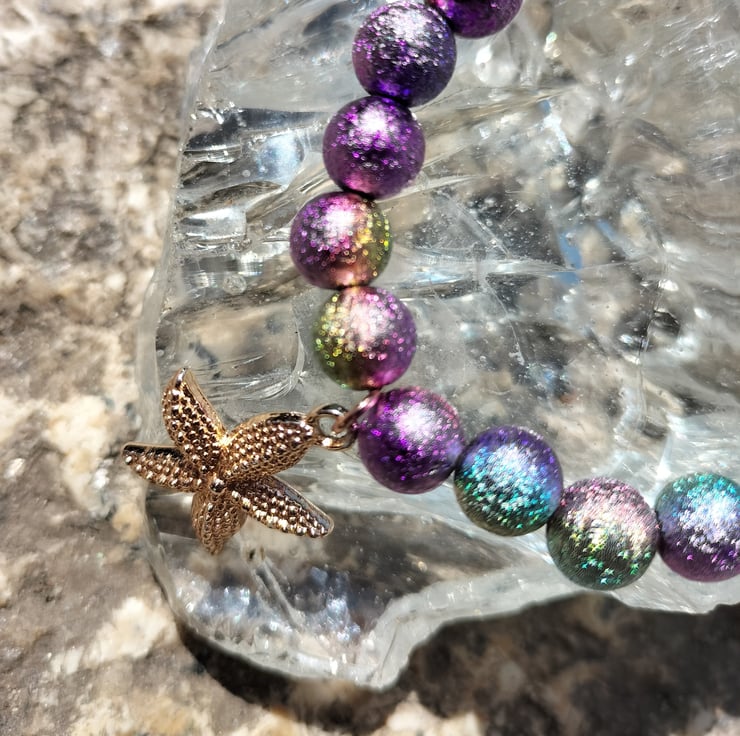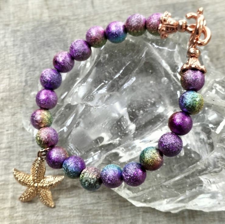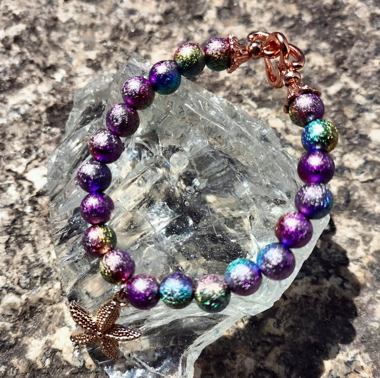 This bracelet is 19cm in length and has rose gold tone fittings and starfish.
