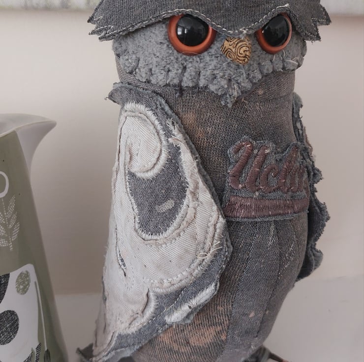 Turn your old school, college or uni hoodie into a quirky keepsake! Soft sculpture owl whimsically handcrafted from garments supplied by you, and other clean, recycled materials. This is not a toy. The owl in this picture is not for sale but for reference only. The Quirky Garden will email you with more details, including how to get your garment to me free of charge, within 24 hours of receipt of order. Please feel free to contact me using the contact button at the top of my shop with any queries. Images show completed work. Price includes postage including a prepaid envelope to send your garments to me.