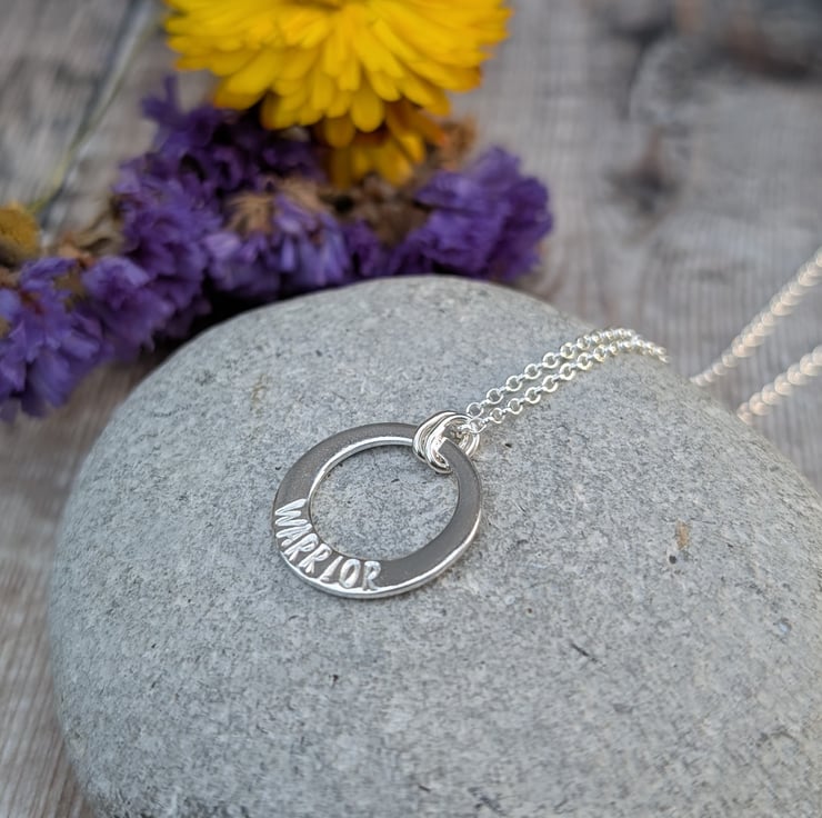 Recycled Sterling Silver 'WARRIOR' Motivational Empowerment Circle Necklace