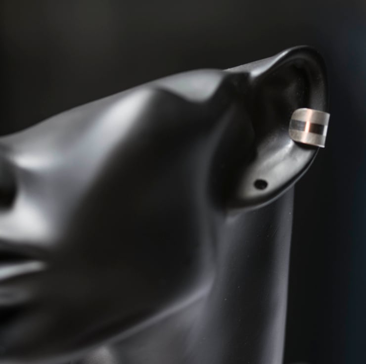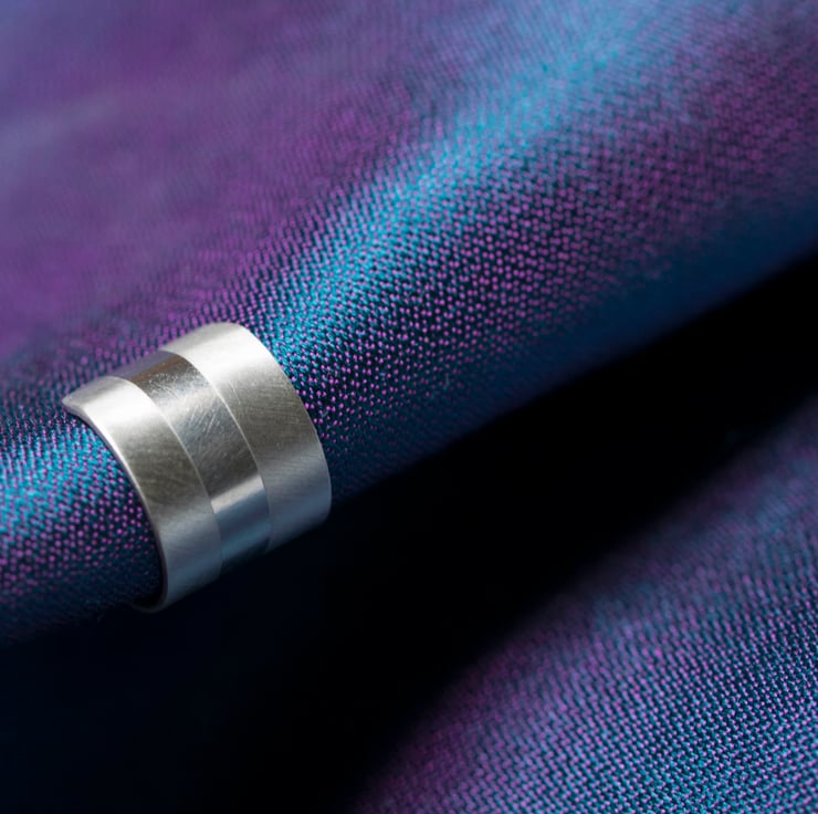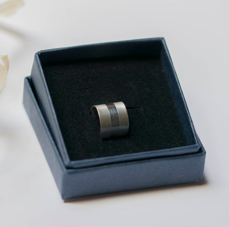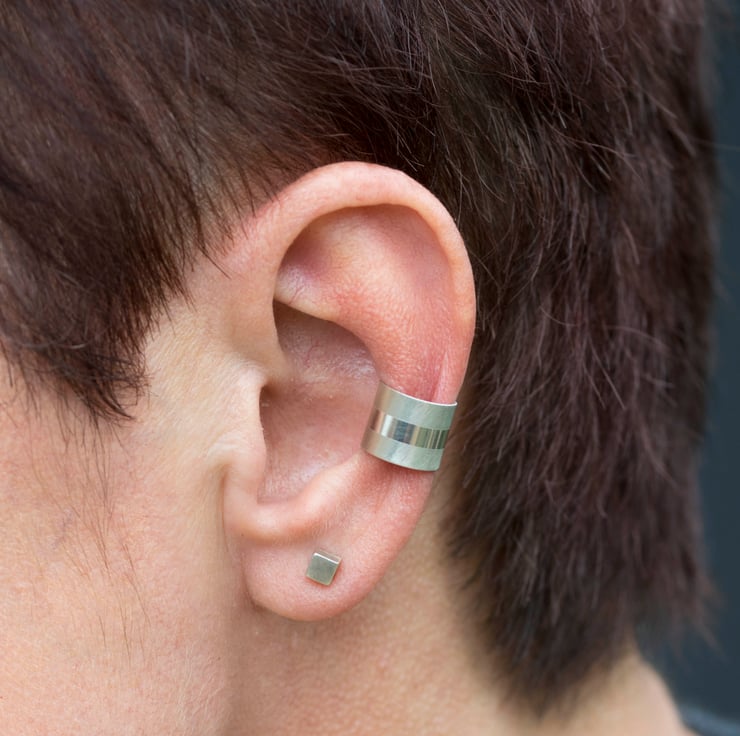 Chunky silver ear cuff with a two tone texture, brush matte and mirror polished