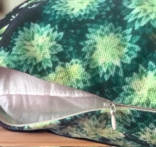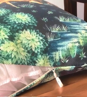 The cushion measures approx. 45cm (H) x 45cm (W). The inner cushion measures approx. 44.5cm x 44.5cm, making a snug fit. It is handmade using a quality linen and polyester blend material. The design is on both sides. The cushion has a concealed zip to allow the inner pad to be removed as needed.
