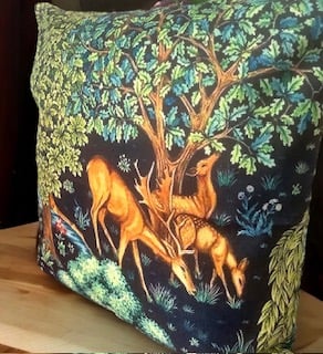 The 'Deer by Brook' Cushion is a stunning design displaying 3 deer pecking at grass by a brook in this beautiful handmade William Morris Design. Whether you are new collector, or lover to William Morris cushions, this design is perfect as art against pillows on your bed, or as a unique cushion on your sofa. This idyllic scene would simply work well in any room. The cushion will arrive gift wrapped.