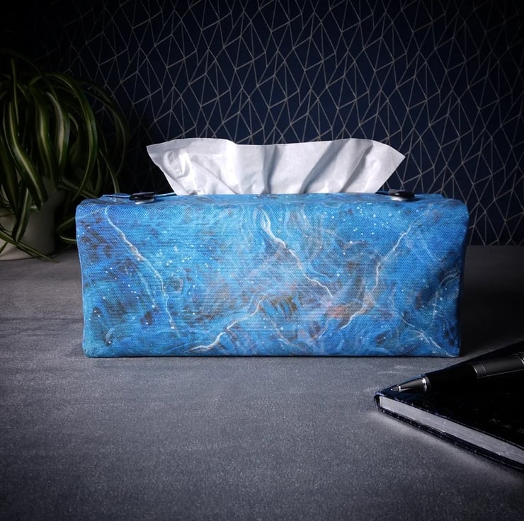 Printed cotton tissue box cover handmade in Glasgow, Scotland