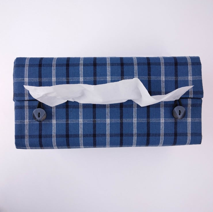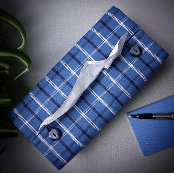 Woven cotton tissue box cover handmade in Glasgow, Scotland