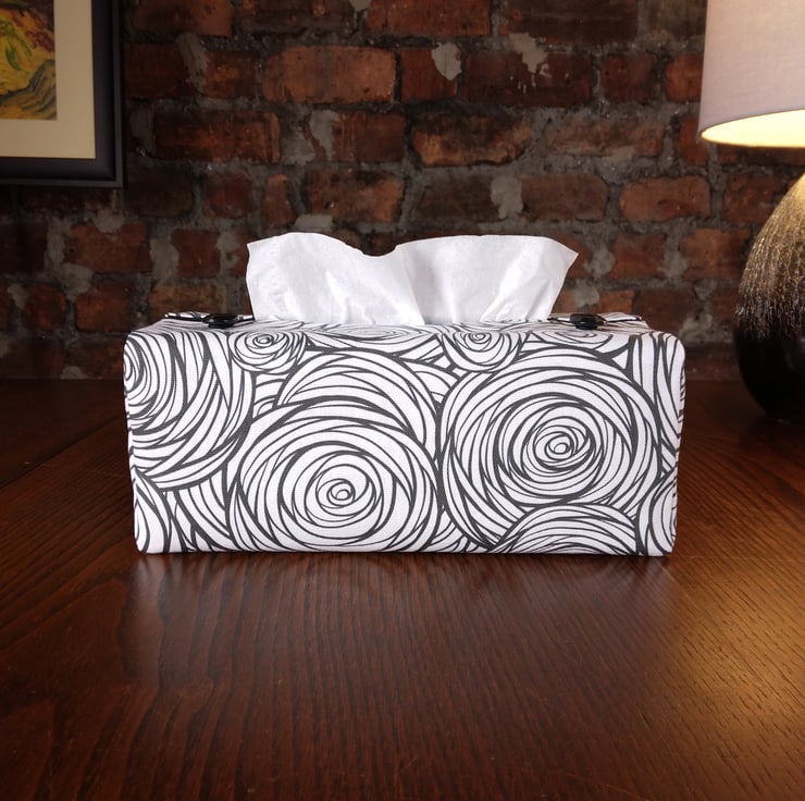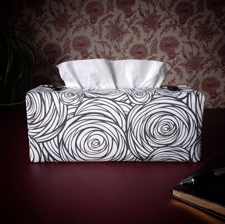 Printed cotton tissue box cover handmade in Glasgow, Scotland