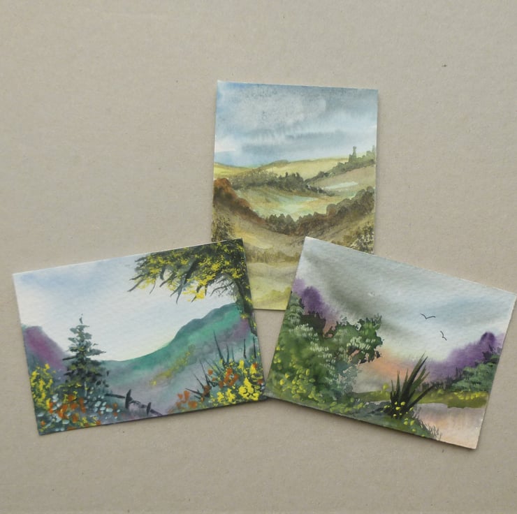 each painting measures approximately 2.5" x 3.5" and will come in a clear polybag to protect it. Each one is signed on the back