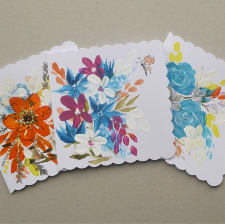 This is a beautiful bundle of 3 original hand painted floral greetings cards. Each one is an original and NOT a print, hand painted in quality artist's paints.