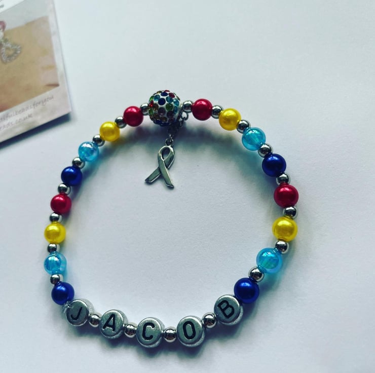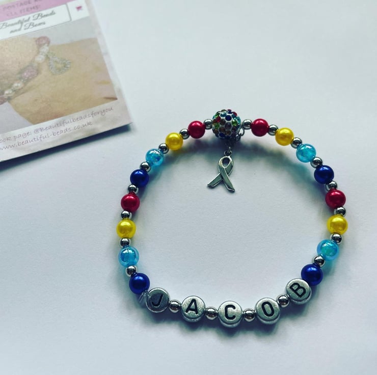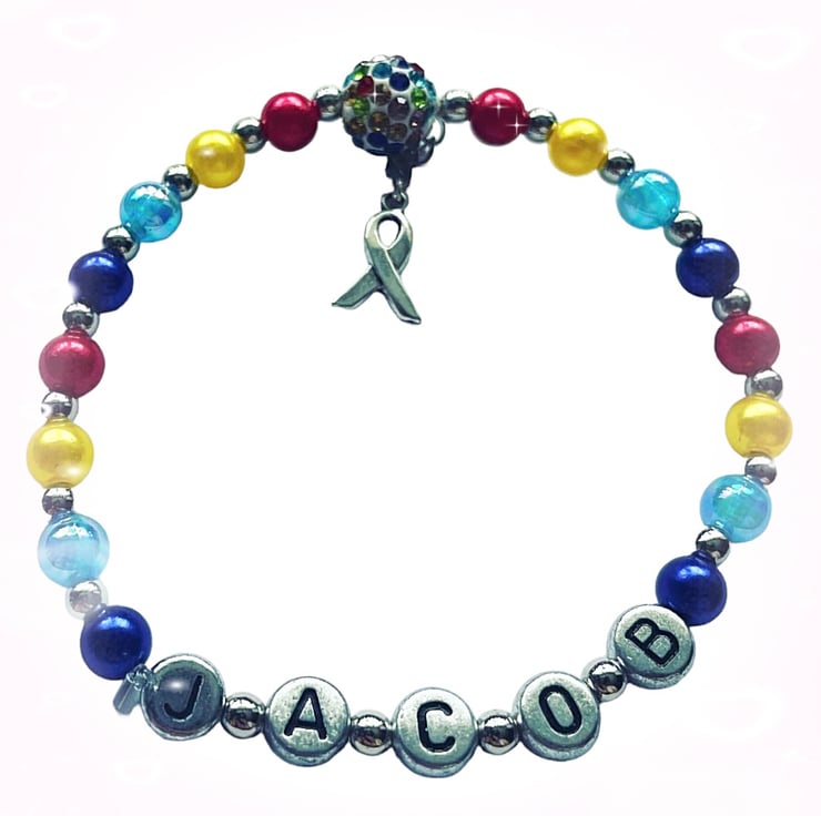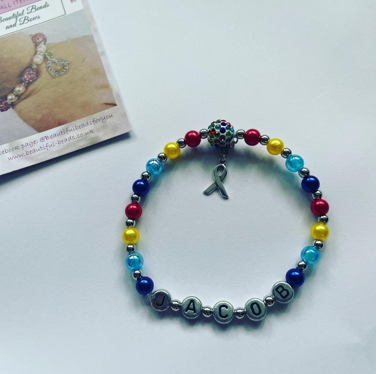 Stretch beaded multicoloured shamballa bracelet in awareness and support