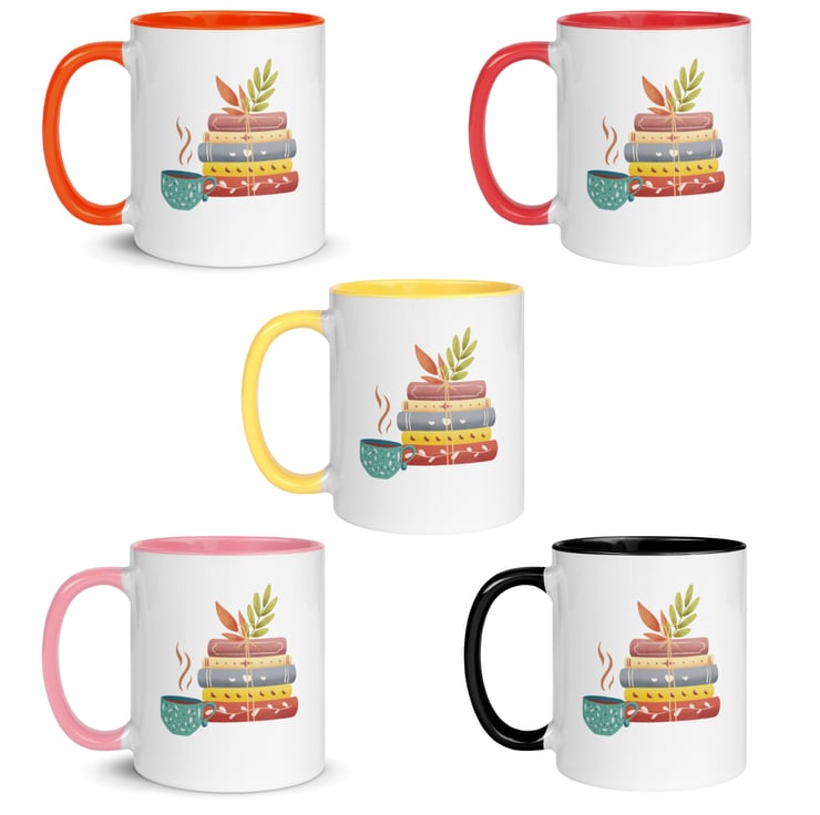 This sturdy White Ceramic Mug has a colorful inside and a white print area all around the mug.