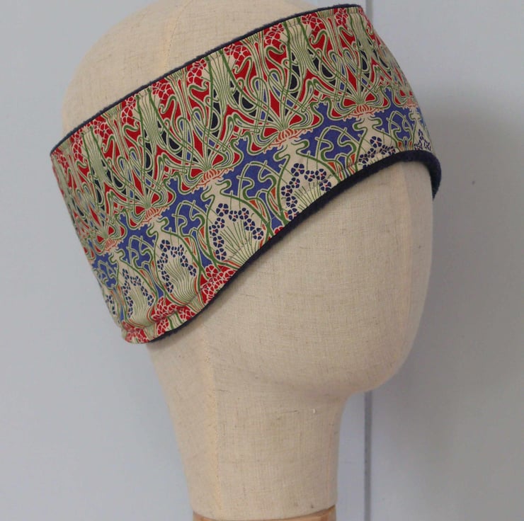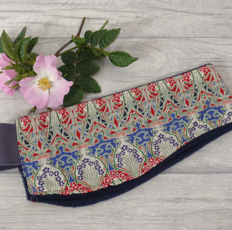 One headbandusing, Liberty fabric lined with Navy Fleece.