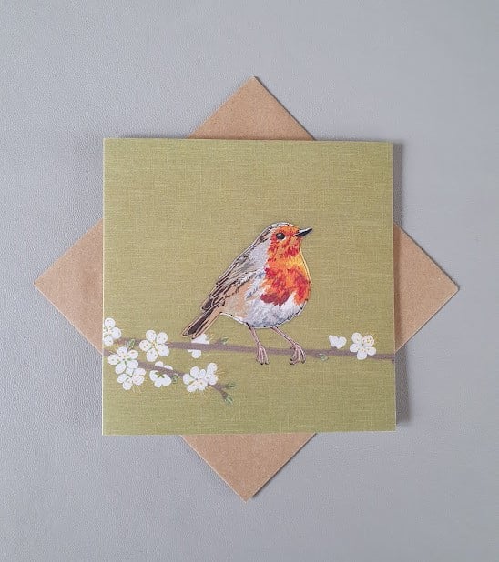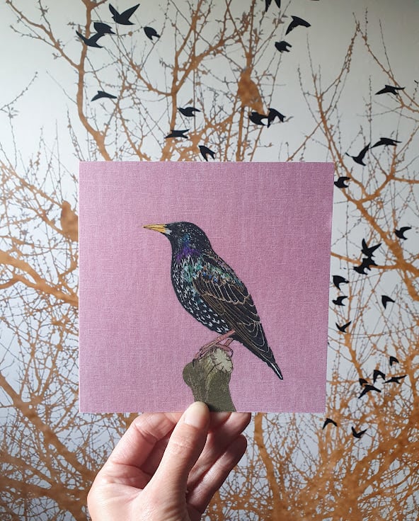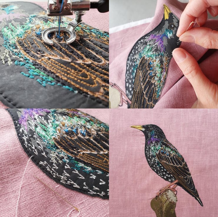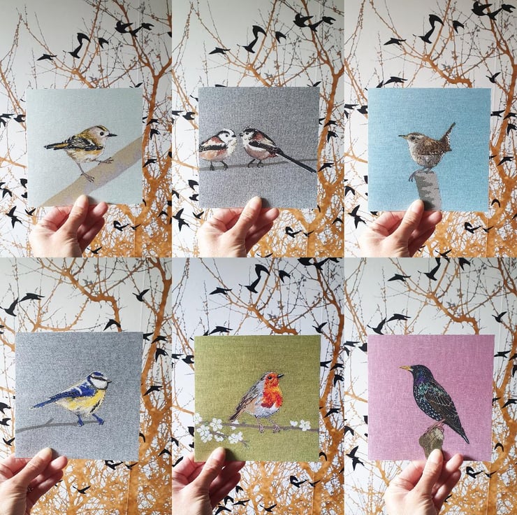 My designs are inspired by British wildlife. I create them using a combination of appliqué and freehand machine embroidery. The designs are then scanned and digitally printed on placemats, coasters, tea towels and greetings cards, and are all listed on my Folksy shop.