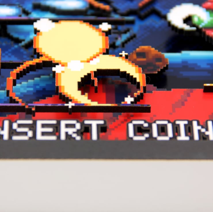Our Arcade Shoot Em Up 3D pixel art makes the perfect gift for that special occasion or offers a new angle to brighten up that gaming den.