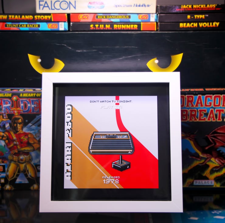 Relive the classic days with our Atari 2600 Woody Nostalgia artwork complete with old advertising slogan. Hand drawn 1 pixel at a time to deliver a unique piece that makes the perfect gift for any retro fan of the 8 bit era.