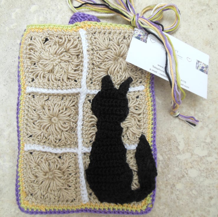 Lucky for some! a crochet kindle sleeve with a black cat design.
