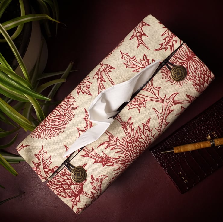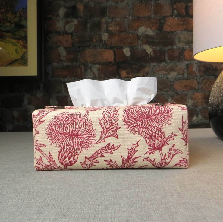 Printed cotton tissue box cover handmade in Glasgow, Scotland