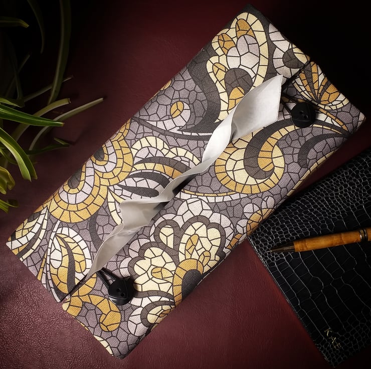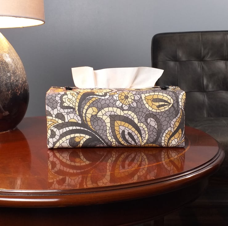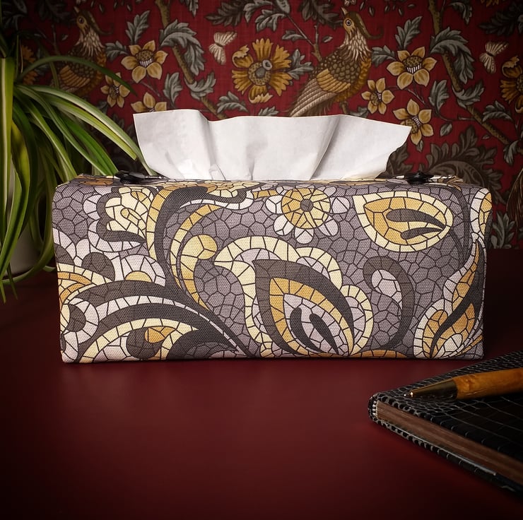 Printed cotton blend tissue box cover handmade in Glasgow, Scotland