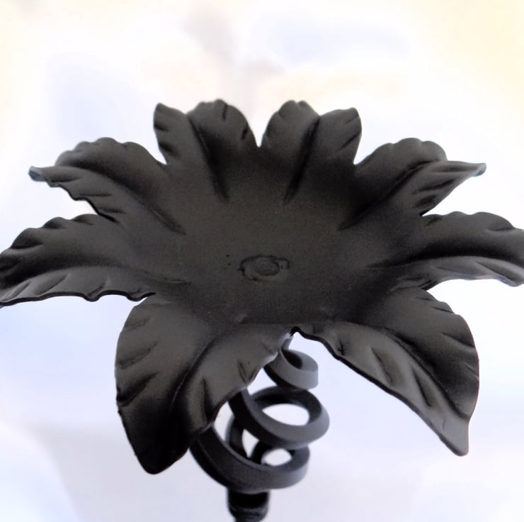 Crafted by hand, these candle holders boast an enchanting matt black finish that seamlessly blends with the aesthetics of traditional ironwork, adding an air of sophistication to any setting. Featuring twin basket center poles and exquisitely hand-bent quadruple feet, they epitomize the classic elegance of wrought iron craftsmanship. The inclusion of a pressed flower drip tray further enhances the allure of these holders, exuding a truly traditional ambiance.