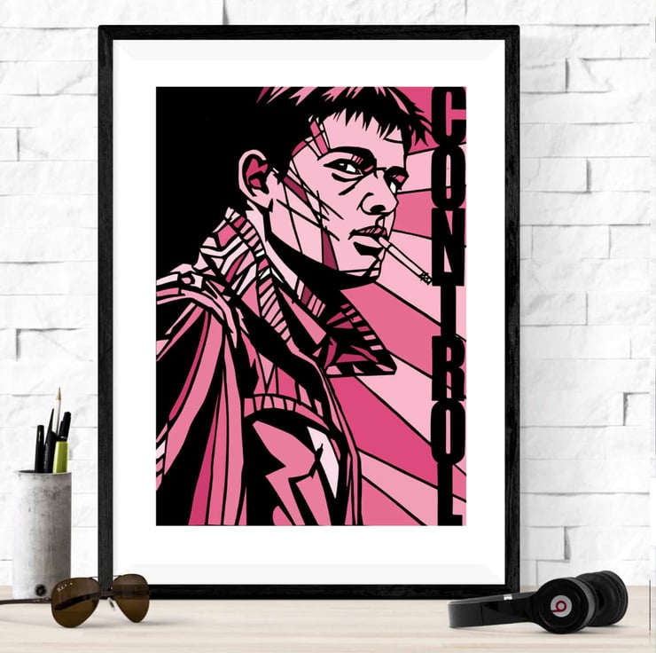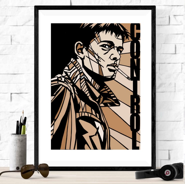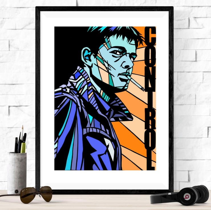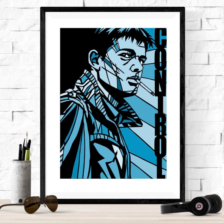 A vibrant art print featuring Sam Riley in his portrayal of Joy Division's Ian Curtis from the Anton Corbijn film, Control. Available in a range of colours to suit your preference.