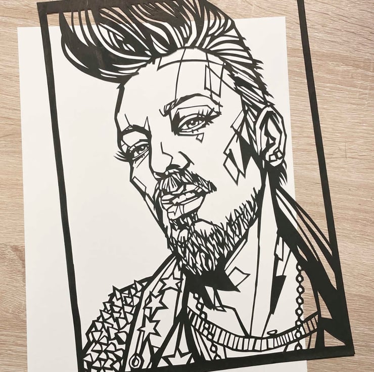 Handcrafted papercut featuring Culture Club's 'Boy George'.