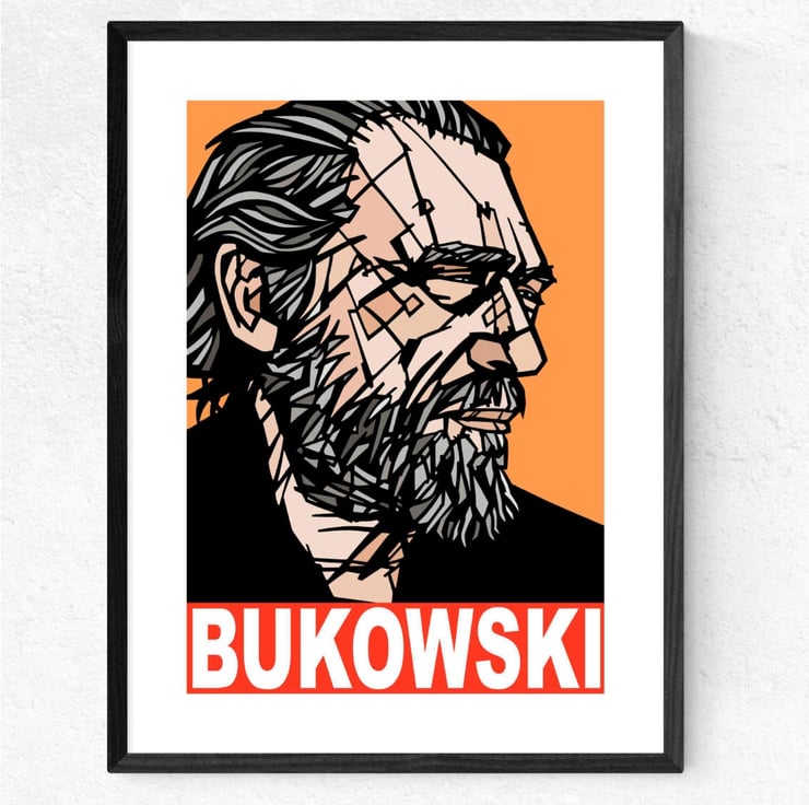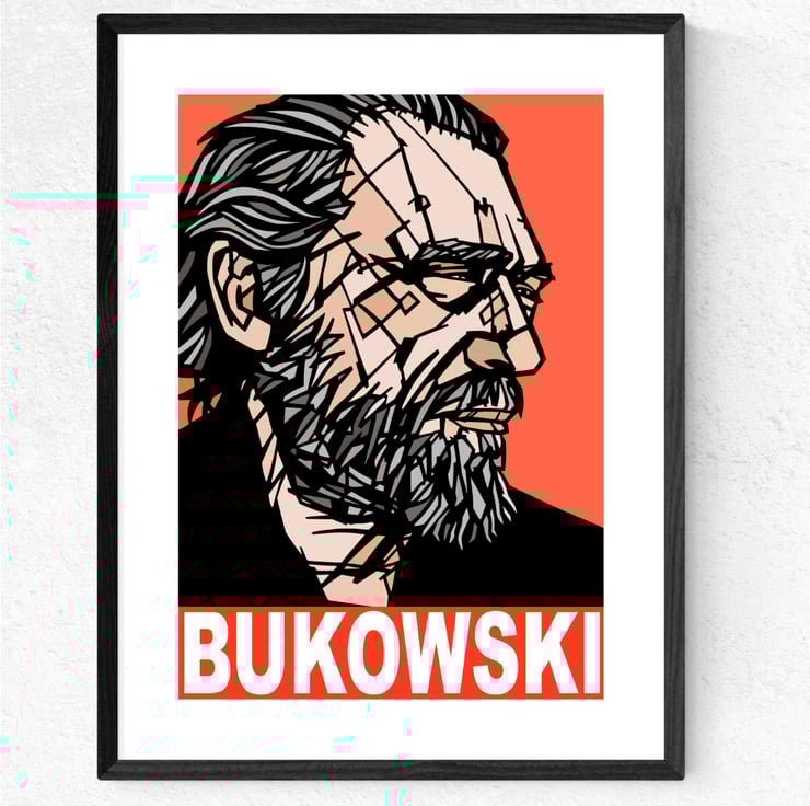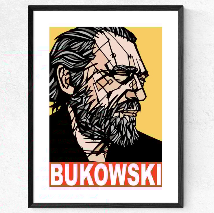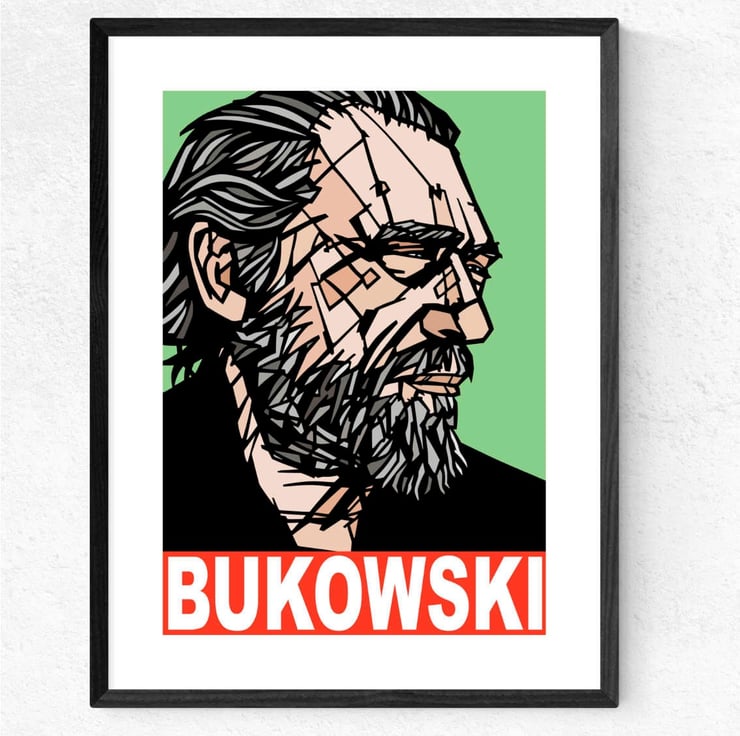 A vibrant Pop Art art print featuring German-American writer and poet, Charles Bukowski.