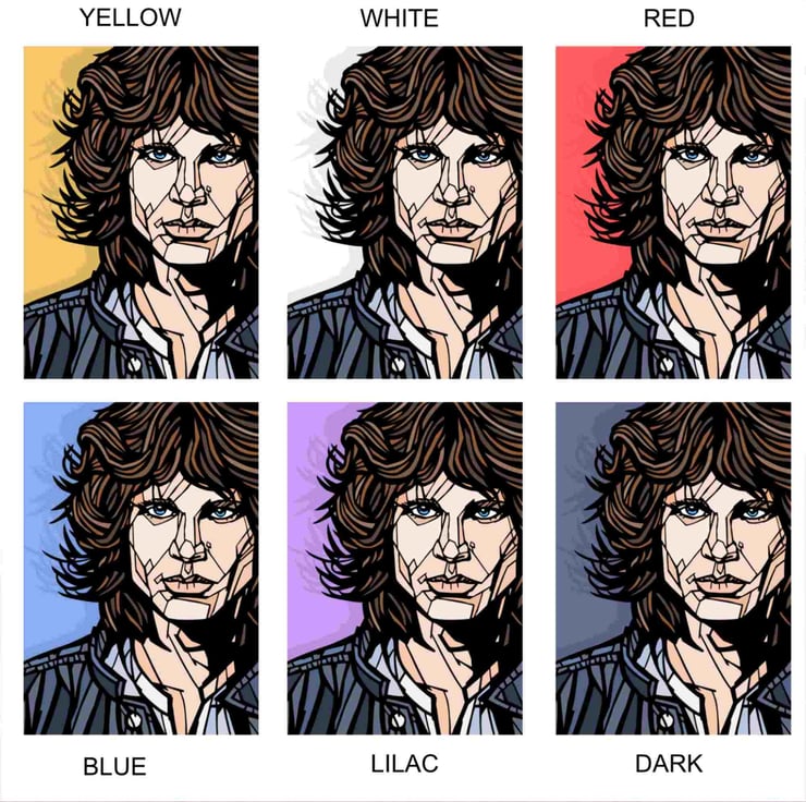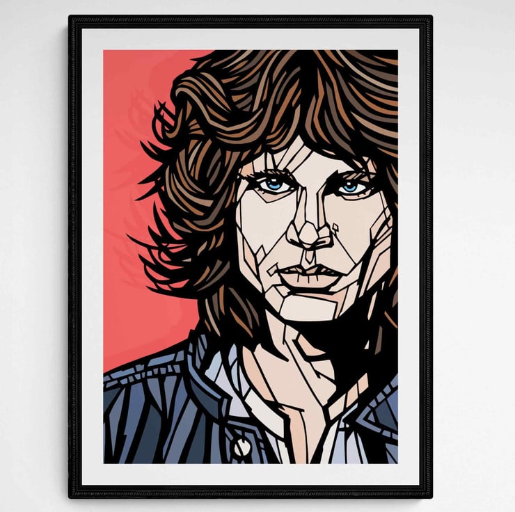A vibrant art print featuring The Doors frontman, Jim Morrison.