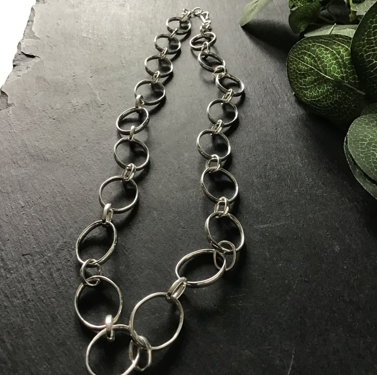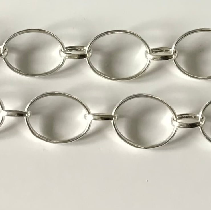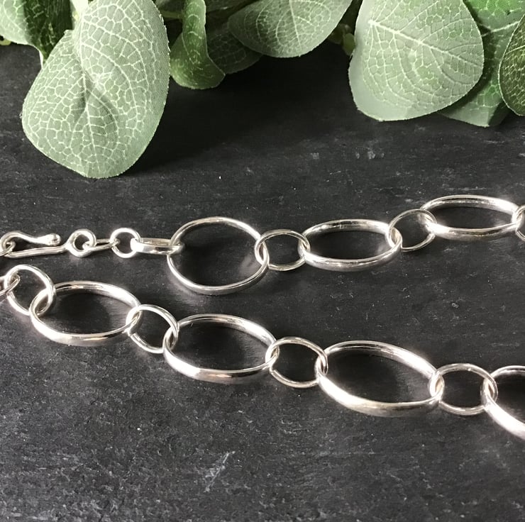 Every link has been made individually by hand from Eco silver grain. We smelt the grain into ingots in our Devon workshop, then hand draw this into wire, before making and soldering the oval links to form a chain. Truly unique and classically elegant.