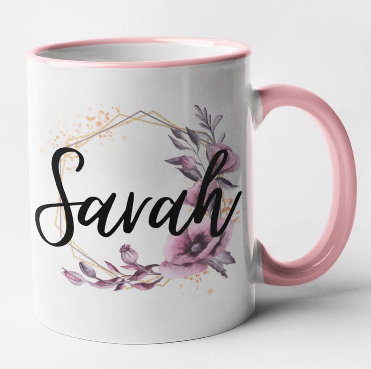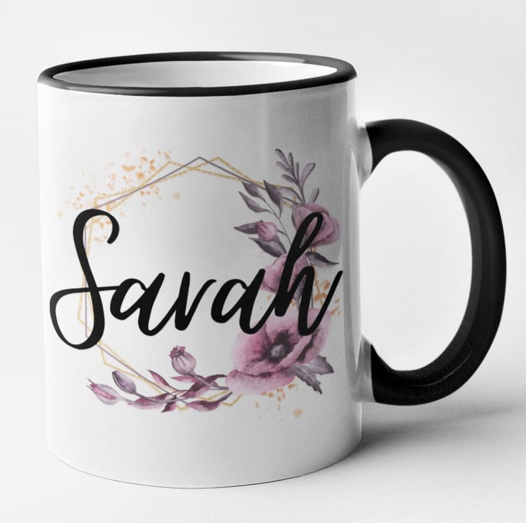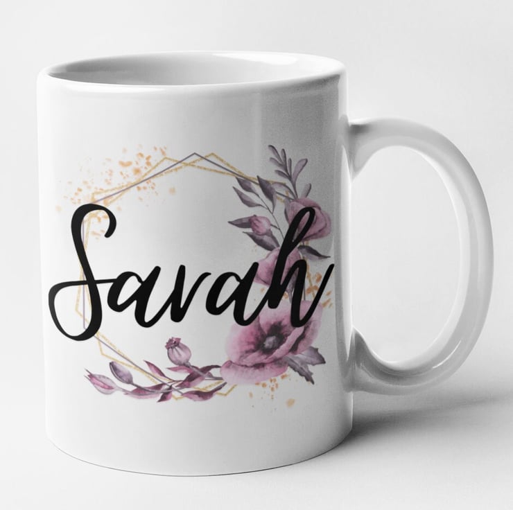 Personalised Floral Name Mug Flowers & Name Mug Custom Name