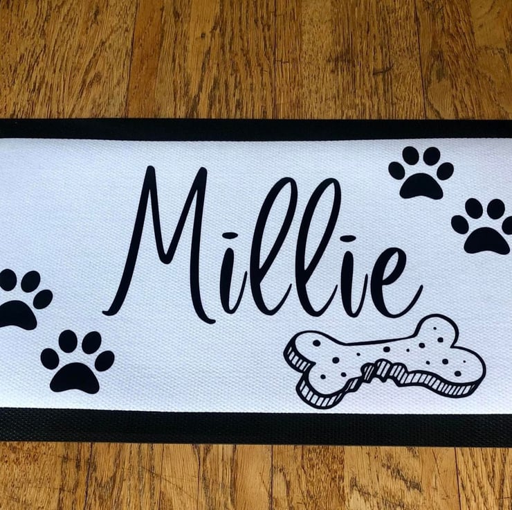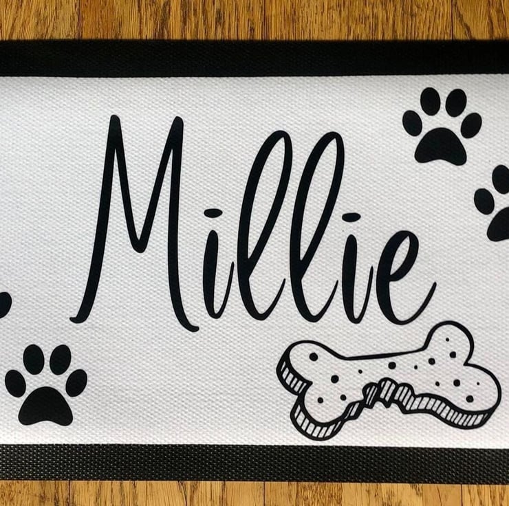 These personalised pet mats make a fantastic addition to any home. Simply add your pets name in the 'add your personalisation' section above. This particular design is more suited for dogs, we do sell another product suited towards cats.