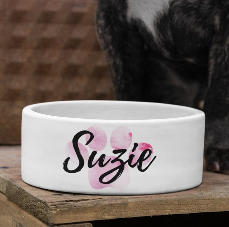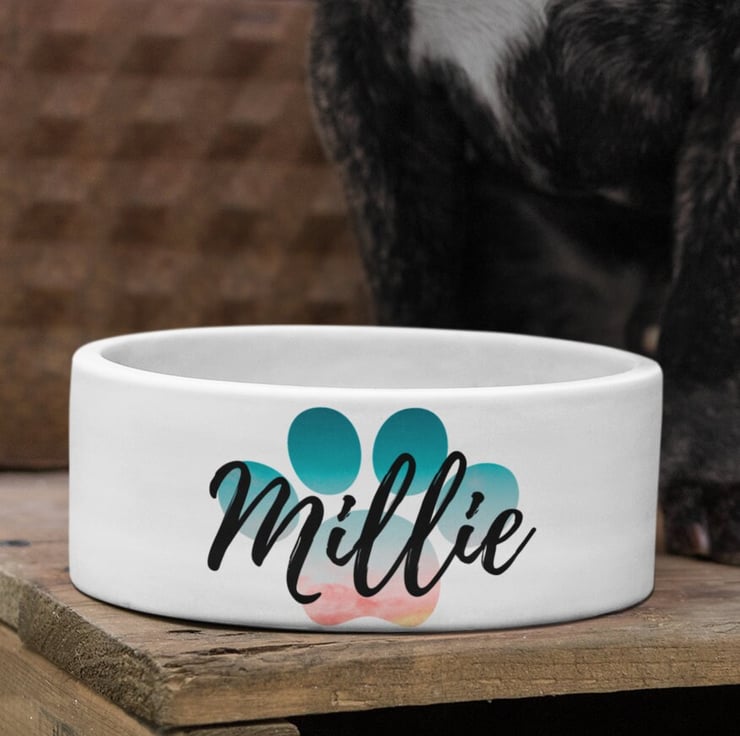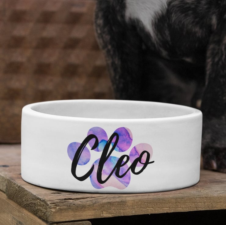 Personalised Name Pet Bowls Pet Paw Water Colour Variations Small Large Custom