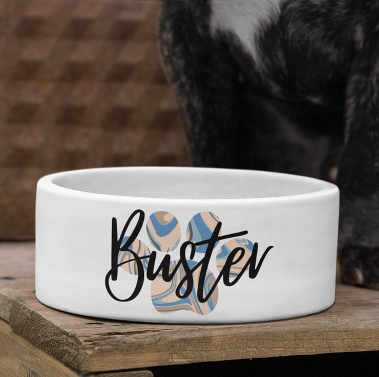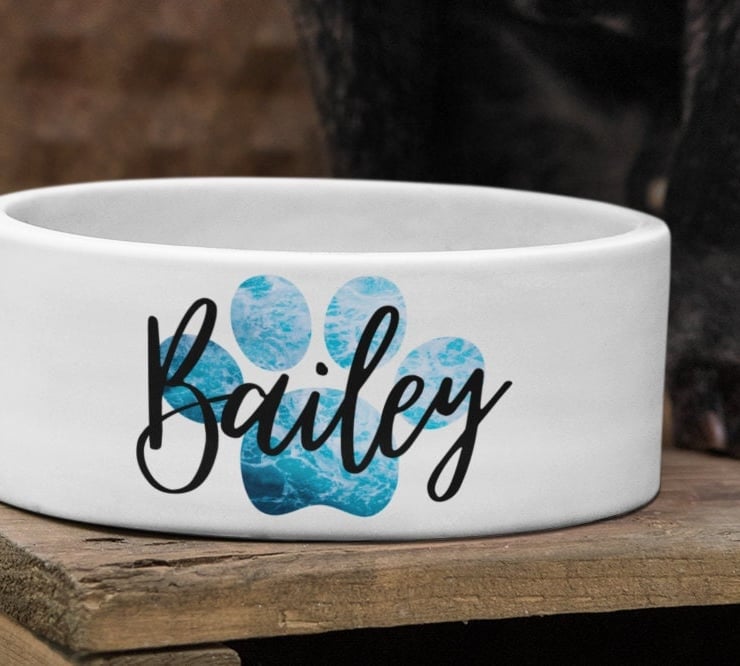 Please browse through the images to see the design mock ups. Once you decide to order a custom pet bowl select the size and paw design using the drop down menu. Add the custom name on the pet bowl in the text box.