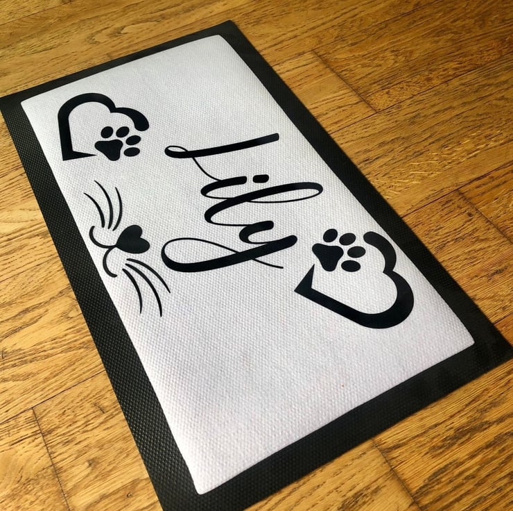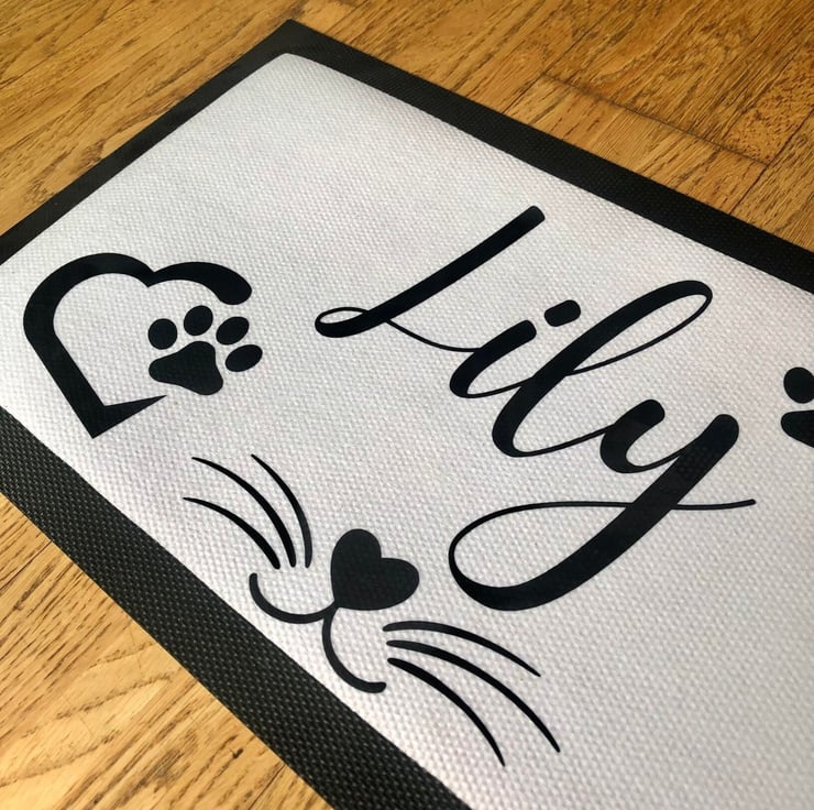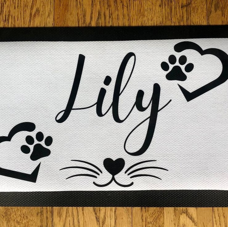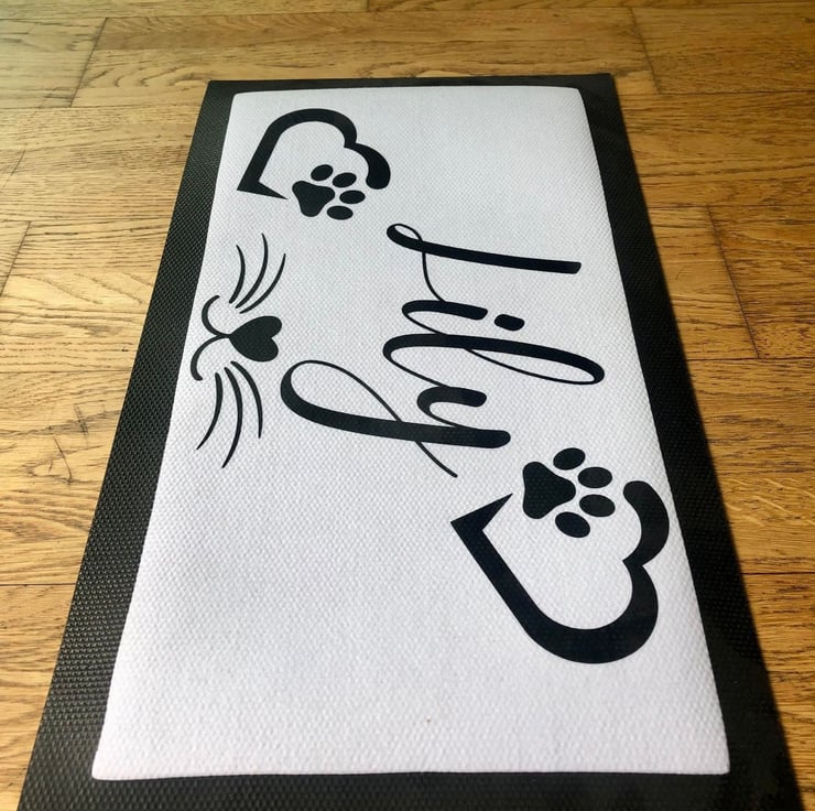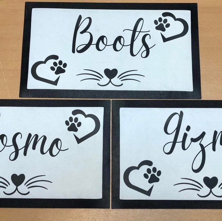 These personalised pet mats make a fantastic addition to any home. Simply add your pets name in the 'add your personalisation' section above. This particular design is more suited for cats, we do sell another product suited towards dogs.