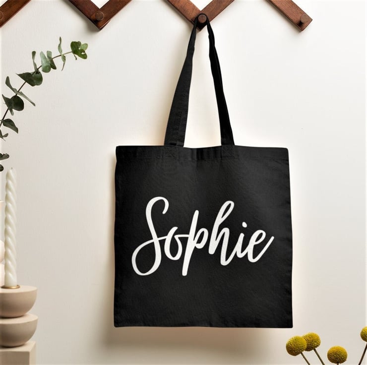 When you are ready to place an order, simply write the name you want printed onto the tote bag in the 'add your personalisation' box above. Use the drop-down menu to choose the colour of the tote bag.