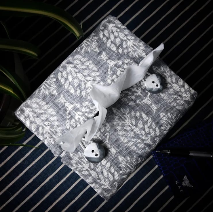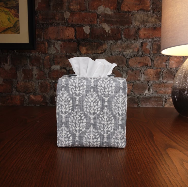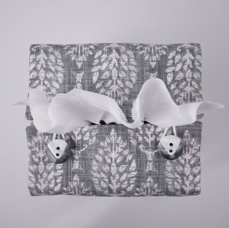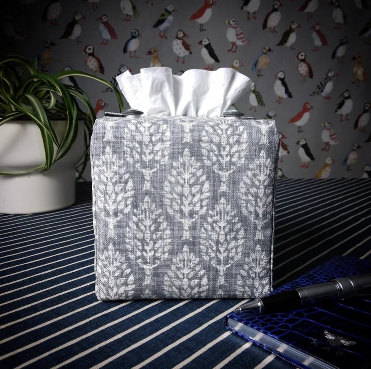 Printed cotton tissue box cover handmade in Glasgow, Scotland