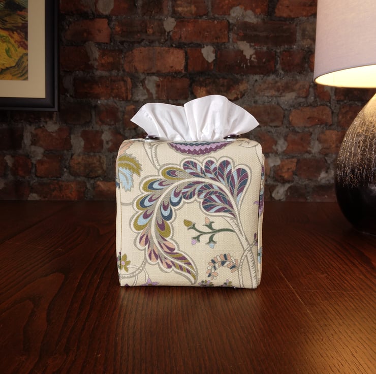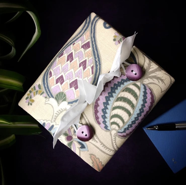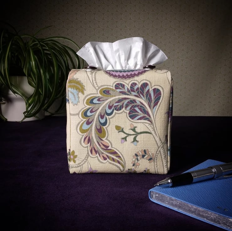 Printed cotton tissue box cover handmade in Glasgow, Scotland