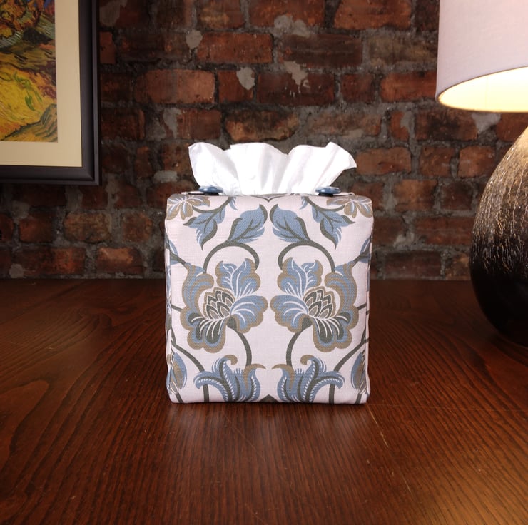 Printed cotton tissue box cover handmade in Glasgow, Scotland