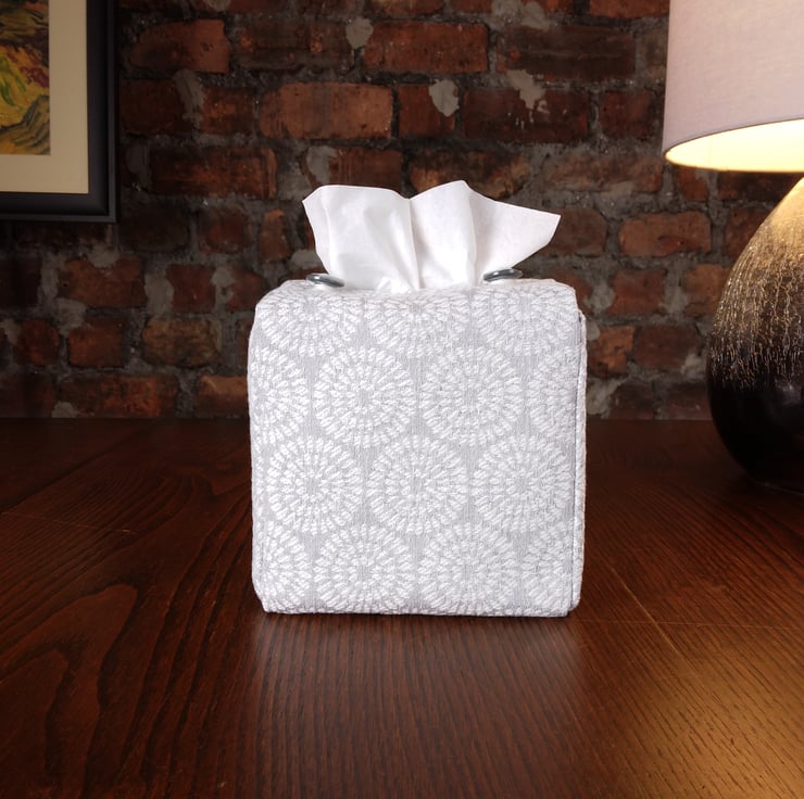 Woven cotton tissue box cover handmade in Glasgow, Scotland