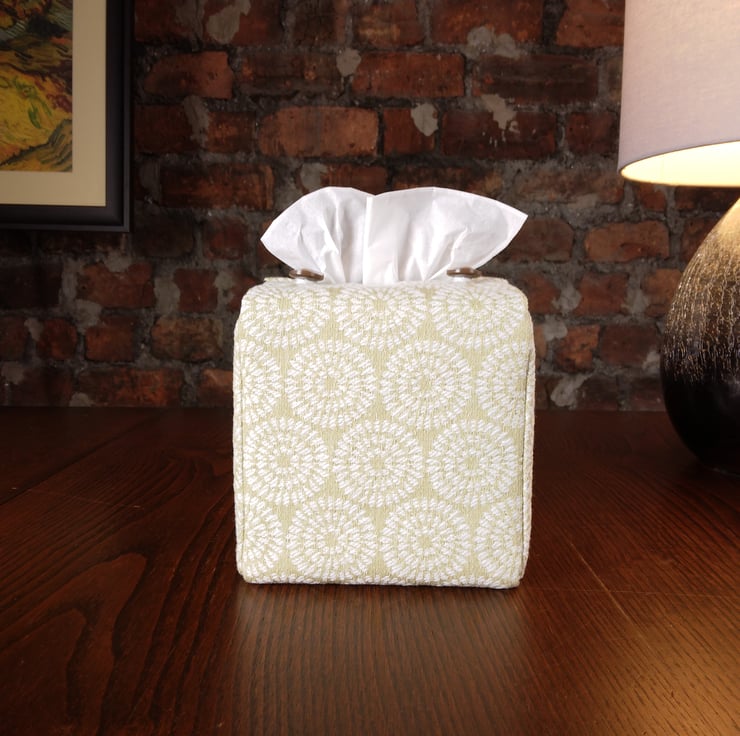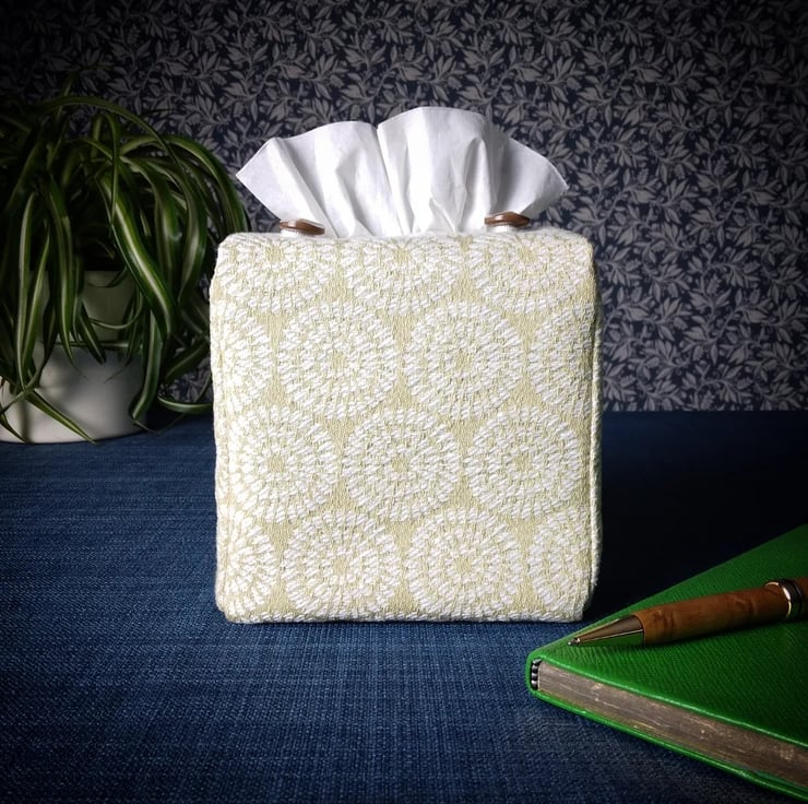 Woven cotton tissue box cover handmade in Glasgow, Scotland