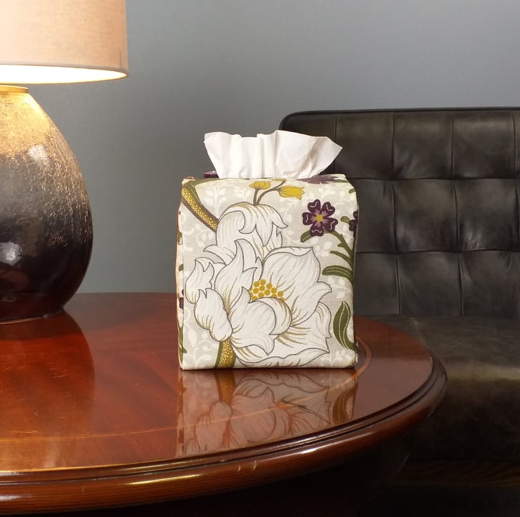 Printed cotton tissue box cover handmade in Glasgow, Scotland
