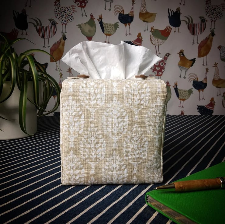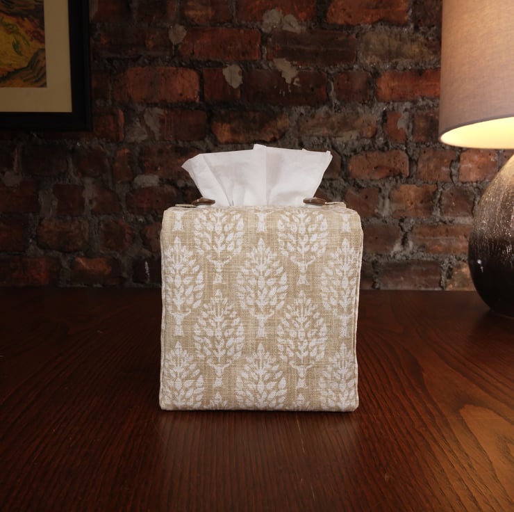 Printed cotton tissue box cover handmade in Glasgow, Scotland